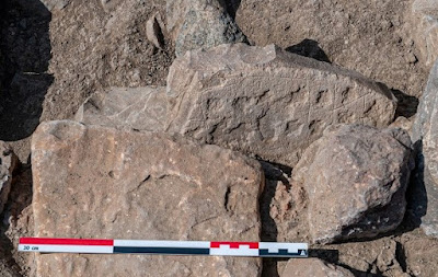 “Panel A, the deer butchering panel (Figure 5), is a unified scene that depicts a specific event or refers to a specific action, story, or concept. The scene covers an area 20 cm wide, 15 cm tall, and extends from 44 cm. above the floor. Seven people surround a reclined deer on its back and presumably dead. Six of the people, with weapons set aside on the ground, work on the deer. Three hold the legs, one holds the tail, and the remaining two are in the body cavity apparently removing internal organs.” (Billo, Mark, and Greer 2011:53) The figures wear unique head ornamentations, and the authors recognize that this suggests identifiable individuals. “The seventh person, again with a distinctive hairdo and holding hooked sticks, is at the right side of the scene, standing apart as in a kind of observer or instructor.” (Billo, Mark, and Greer 2011:54) Toward the upper right of the grouping there are objects shown lying on the ground which appear to be an atlatl with a pair of darts and lower down another possible pair of atlatl darts along with a more problematic decorated stick or pole. Another probable atlatl is seen at bottom center with a possible dart, and at the top, left of center, two more lines may represent darts.